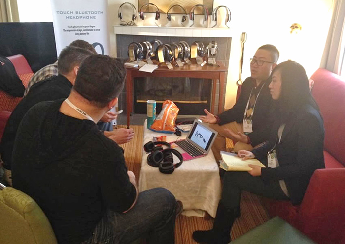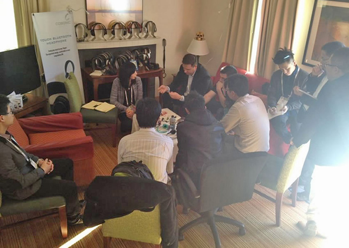 每年的CES关于科技、电子厂商来说都是一场盛宴,,,许多重量级新品都会在CES上宣布。。。今年在美国拉斯维加斯举行的CES2014上,,,我司就举行了盛大的客户晤面会,,,宣布了最新推出的骨传导,,,智能可衣着装备,,,触摸蓝牙等多款新品,,,成为展示中众人瞩目的焦点。。。
